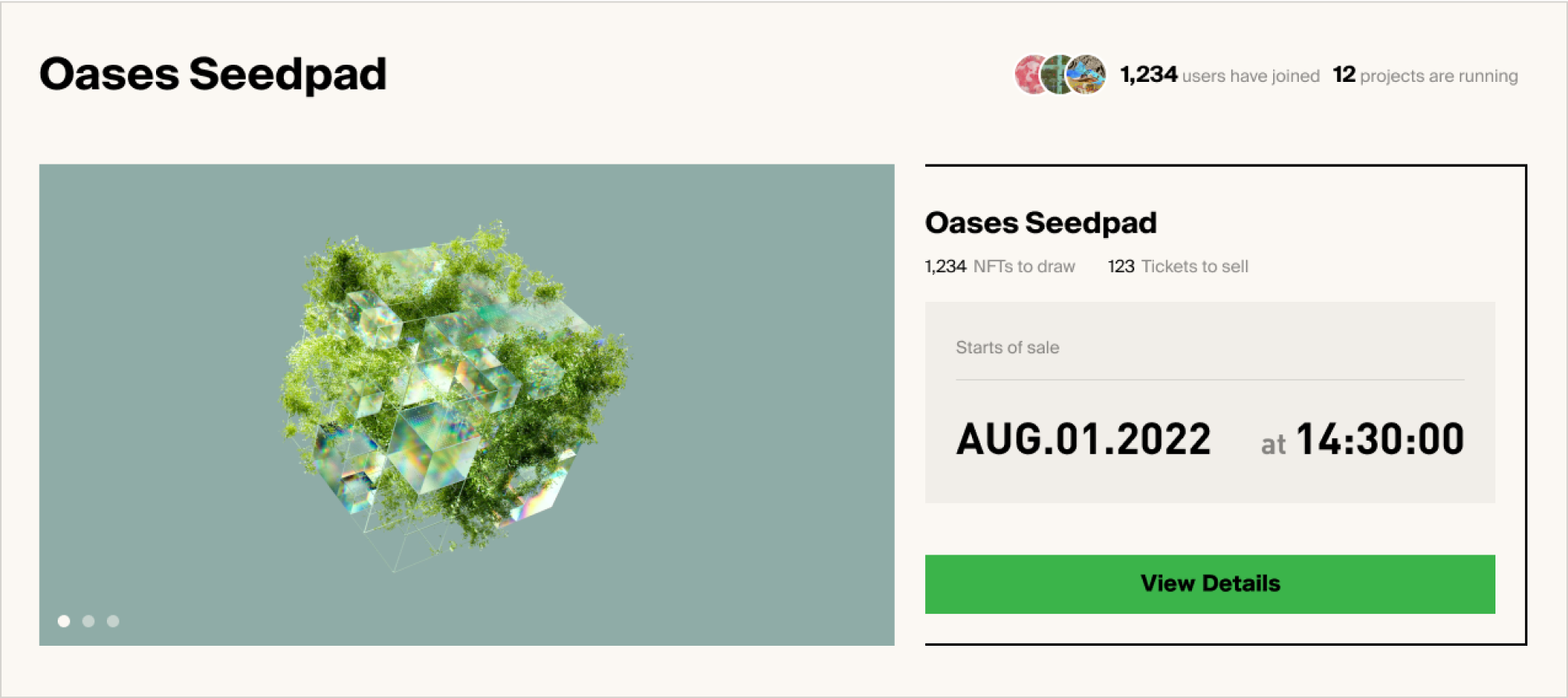 On the project page, you can view the tickets that have been purchased. You can also go to your Oases profile page and view your purchase history under the Seedpad tab.