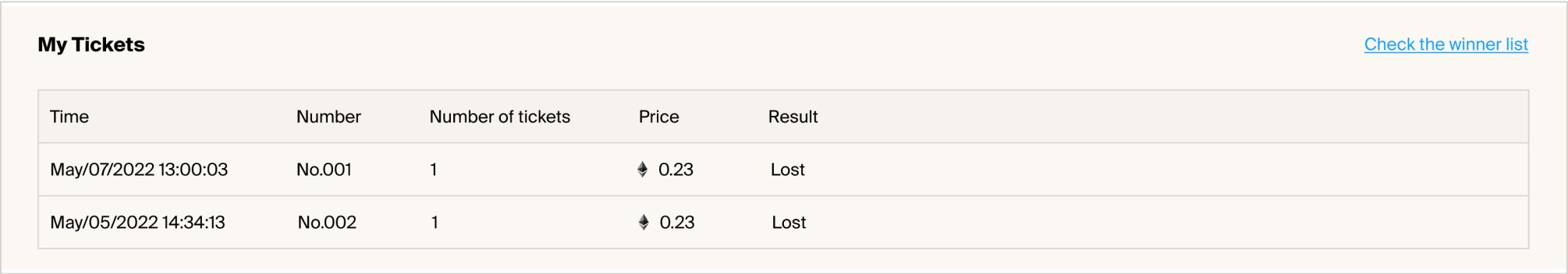 You can view the winning list on the project page after the system finishes the NFT draw.